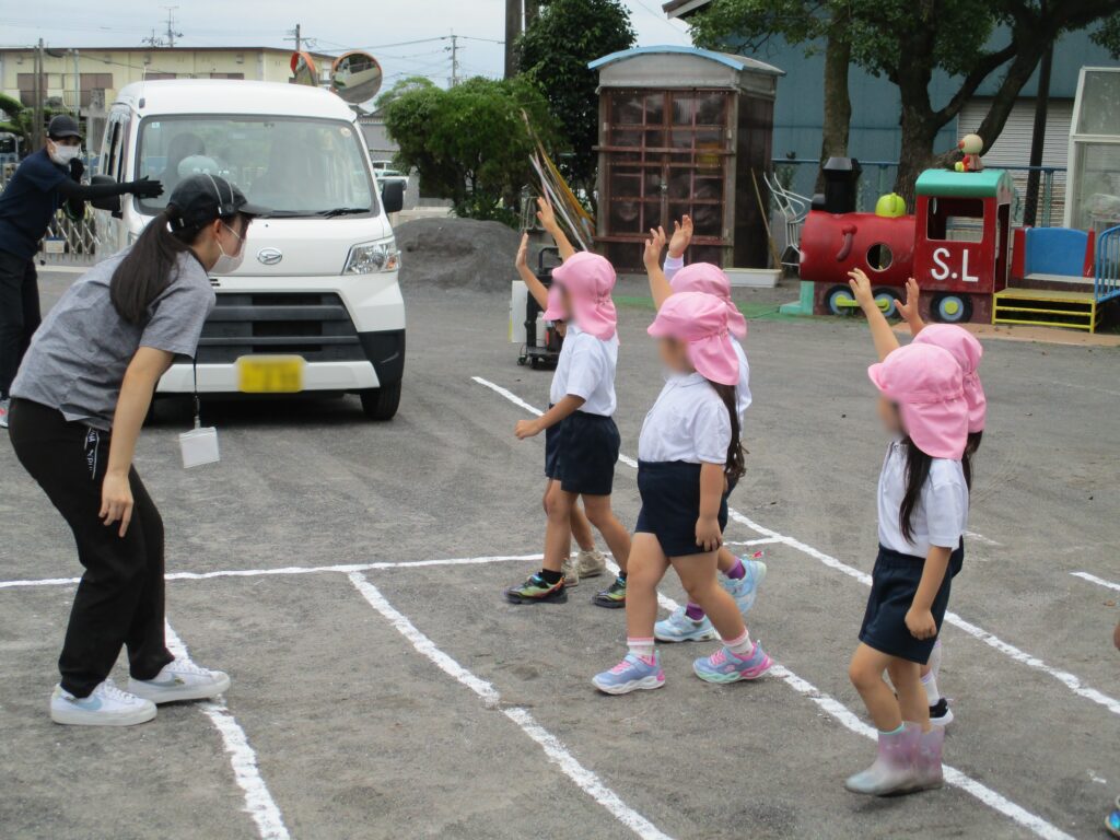 横断歩道を安全にわたるための3つのお約束、「とまる・みる・まつ」を覚えて、上手に横断歩道をわたれました👏