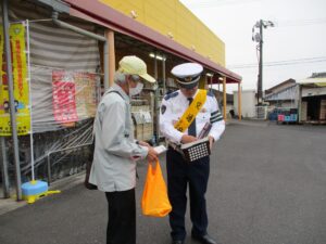 警報に伴い、11月4日(火)スーパーキッド鹿屋札元店の店舗出入口にて事故防止のキャンペーンを鹿屋市役所、鹿屋警察署と合同で行いました。